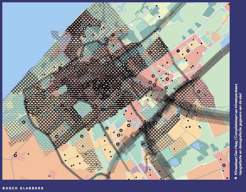 In Klimaatadaptatie in de stad (Bosch Slabbers) staan twee kaarten die meer informatie geven Haagse hitte-eilanden, maar beide kaarten zijn moeilijk begrijpbaar, omdat een verklaring van kleuren en tekens (grotendeels) ontbreekt. Klik op de twee kaarten links en hieronder voor een vergrote versie. Wel lijkt de conclusie voor de hand te liggen: het hitte-eiland-effect is ernstig in Den Haag.