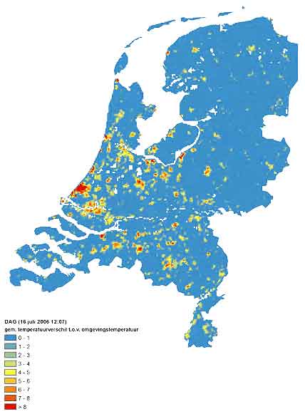 Amersfoortse binnenstad en het buitengebied. In hoeverre deze plannen al zijn uitgevoerd is niet bekend.- Tilburg. Al in 2011 werd een uitgebreide en gedetailleerde hittekaart’ van Tilburg gemaakt, waarop tot op kleine schaal te zien is waar zich hitte-eilanden bevinden.
